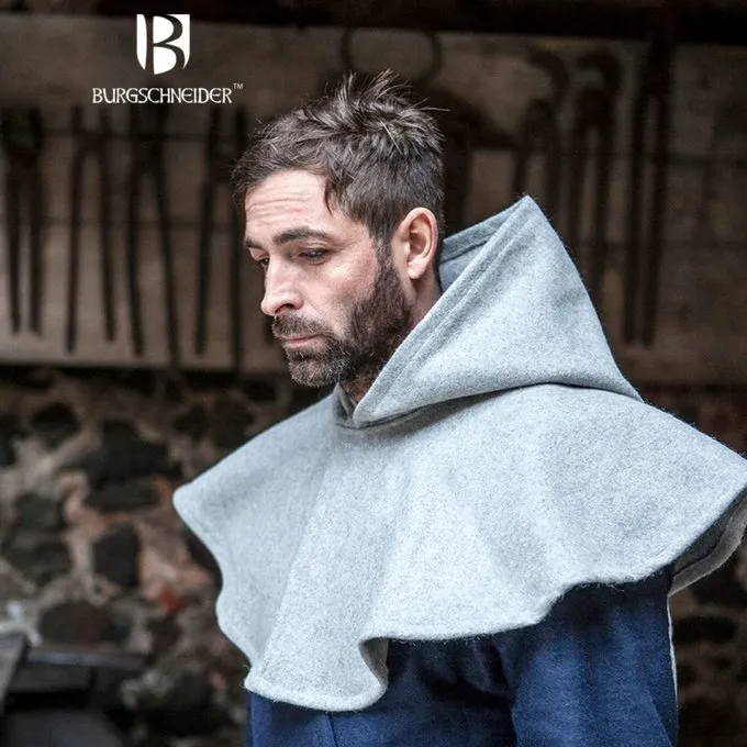 Ce chaperon est faite aprĂšs plusieurs manuscrits du 14e siĂšcle et 15e, dessins Ă la plume et sculptures. Chaperons de ce genre ont Ă©tĂ© portĂ©s toute l’Europe fĂ©odale. Ils protĂšgent la tĂȘte, le cou et les Ă©paules de la pluie et du froid. Chaperons ont Ă©tĂ© portĂ©s par des personnes de toutes les classes de la sociĂ©tĂ© et les deux sexes.