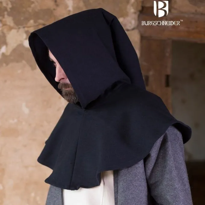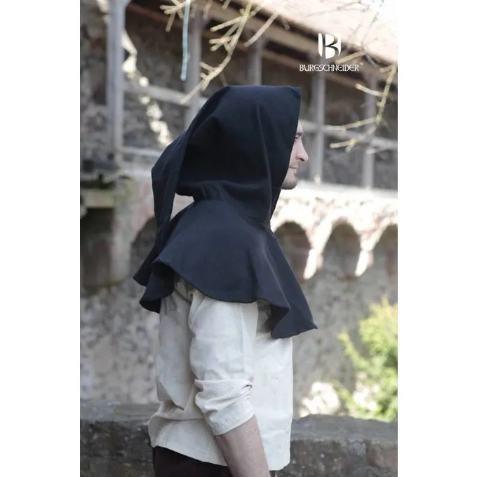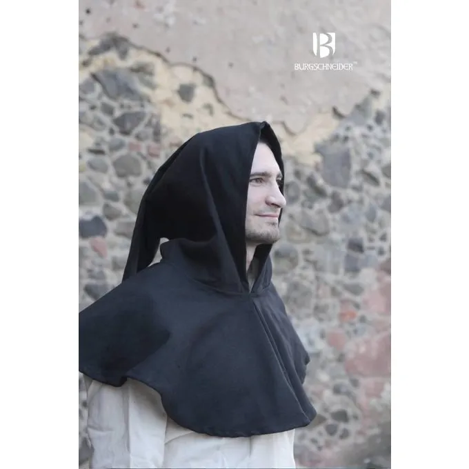 Ce chaperon est fait aprĂšs plusieurs manuscrits, dessins Ă la plume et sculptures des XIVe et XVe siĂšcles. Des chaperons comme celui-ci Ă©taient portĂ©s partout dans l’Europe fĂ©odale. Ils protĂšgent la tĂȘte, le cou et les Ă©paules de la pluie et du froid. Les chaperons Ă©taient portĂ©s par des gens de toutes les classes de la sociĂ©tĂ© et des deux sexes.