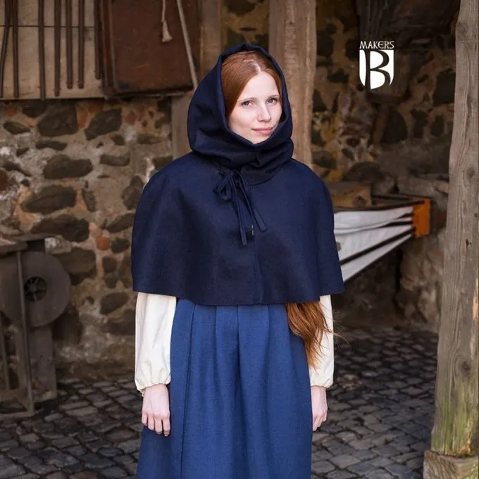 Ce chaperon est basĂ© sur un original reprĂ©sentĂ© dans un livre mĂ©diĂ©val des heures (livre de priĂšre quotidien) d’env. 1350 dans la collection de la British Library. Chaperons comme celui-ci Ă©taient portĂ©s dans toute l’Europe. Ils protĂšgent la tĂȘte et le visage du froid et de la pluie. Les illuminations manuscrites montrent que ce chaperon Ă©tait mĂȘme utilisĂ© pour l’apiculture! Ce chaperon se termine par un long point sur le dos.