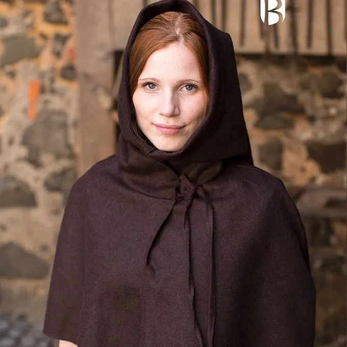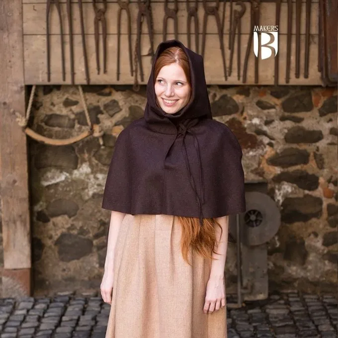 Ce chaperon est basĂ© sur un original reprĂ©sentĂ© dans un livre mĂ©diĂ©val des heures (livre de priĂšre quotidien) d’env. 1350 dans la collection de la British Library. Chaperons comme celui-ci Ă©taient portĂ©s dans toute l’Europe. Ils protĂšgent la tĂȘte et le visage du froid et de la pluie. Les illuminations manuscrites montrent que ce chaperon Ă©tait mĂȘme utilisĂ© pour l’apiculture! Ce chaperon se termine par un long point sur le dos.