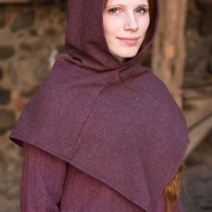 Ce chaperon est basĂ© sur des fragments de vĂȘtements trouvĂ©s Ă Skjoldehamm. Le tissu est tissĂ© dans un motif Ă chevrons. C’Ă©tait un tissu couramment utilisĂ© pendant des siĂšcles.