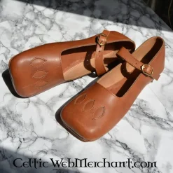 Ce type de chaussures avec une pointe large était populaire vers le 16ème siècle dans toutes les classes de la société. Il a été porté dans une grande variété et a même été copié dans les dessins d’armure de cette époque. De nombreuses couches de la société ne pouvaient pas se permettre de nouvelles chaussures et de réutiliser les chaussures à maintes reprises. Plusieurs chaussures, par exemple le Musée de Londres, montrent comment elles ont été réparées et ajustées régulièrement. Ce type de chaussures a été porté à l’âge de Henry VIII d’Angleterre, l’Armada espagnole, le début de la guerre de 80 ans dans les Nerhlands, par les Landsknechts allemands et pendant la bataille de Pavie.