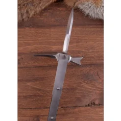 Cette hache pĂŽle est une rĂ©plique de plusieurs originaux qui ont Ă©tĂ© utilisĂ©s Ă l’Ă©poque de la Guerre des Roses. La hache pĂŽle Ă©tait l’arme parfaite pour briser l’armure de plaque. En consĂ©quence, il a Ă©tĂ© utilisĂ© intensivement pendant un Ă un combat. Cette hache pĂŽle a plusieurs conseils et une casquette de bout Ă bout. Lorsque cette hache Ă©moussĂ©e pĂŽle est prĂȘt au combat.