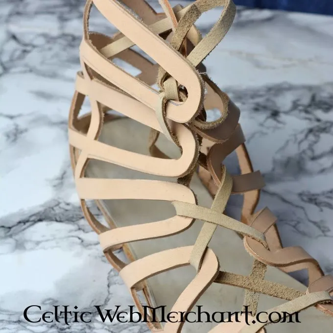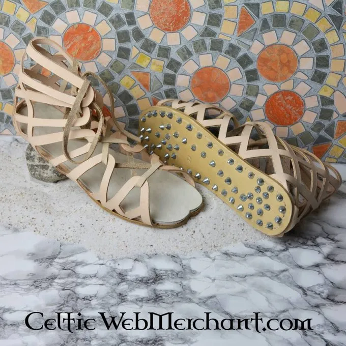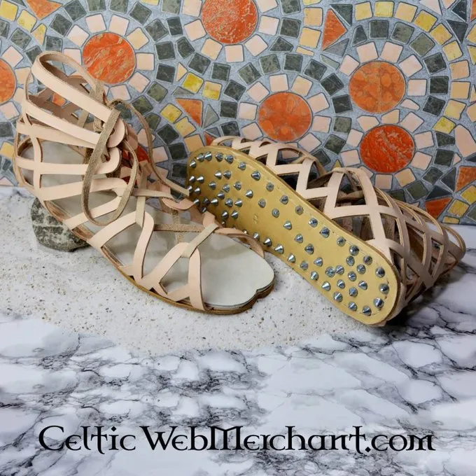 Ces sandales grecques sont faites de 2 mm d’Ă©paisseur de peau de vache et trois couches de semelles Ă©paisses. Ils sont entiĂšrement Ă la main et muni de clous au fond.