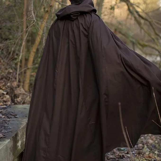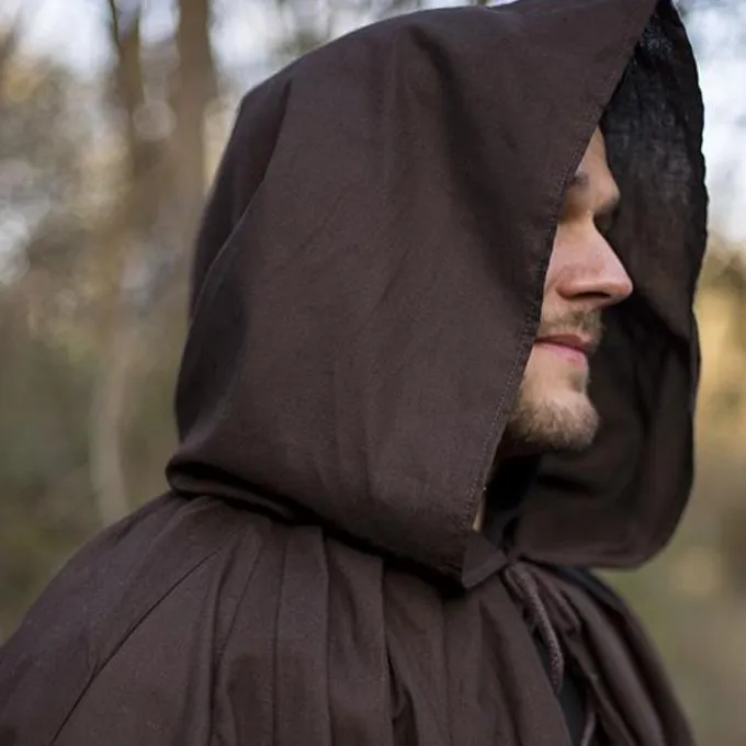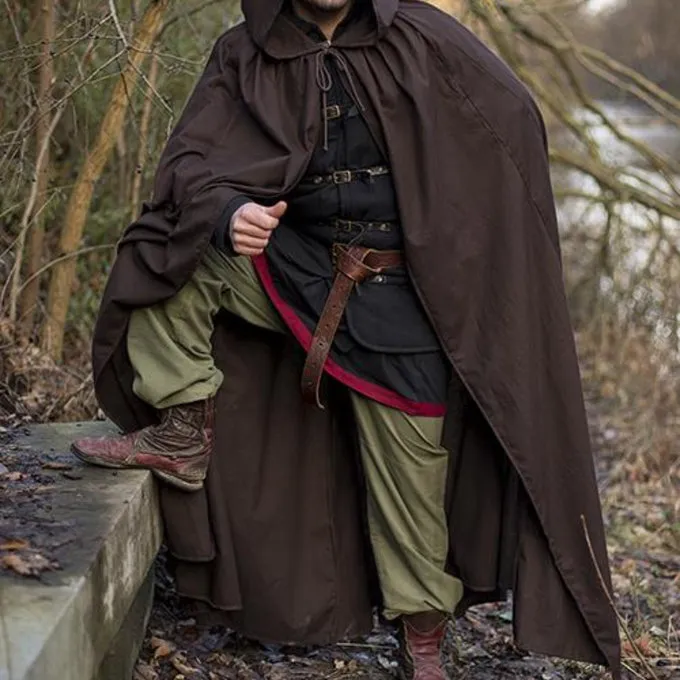 Ce manteau est un modĂšle universel qui a Ă©tĂ© portĂ© du dĂ©but du Moyen Ăge Ă la Renaissance. Il atteint presque les chevilles, a une cagoule et peut ĂȘtre attachĂ© avec des lacets en coton. La cape est en coton et offre une protection contre les Ă©lĂ©ments tout en restant lĂ©gĂšre, rapide et maniable grĂące Ă sa lĂ©gĂšretĂ©. Un vĂȘtement pratique pour la reconstitution, LARP & Cosplay.