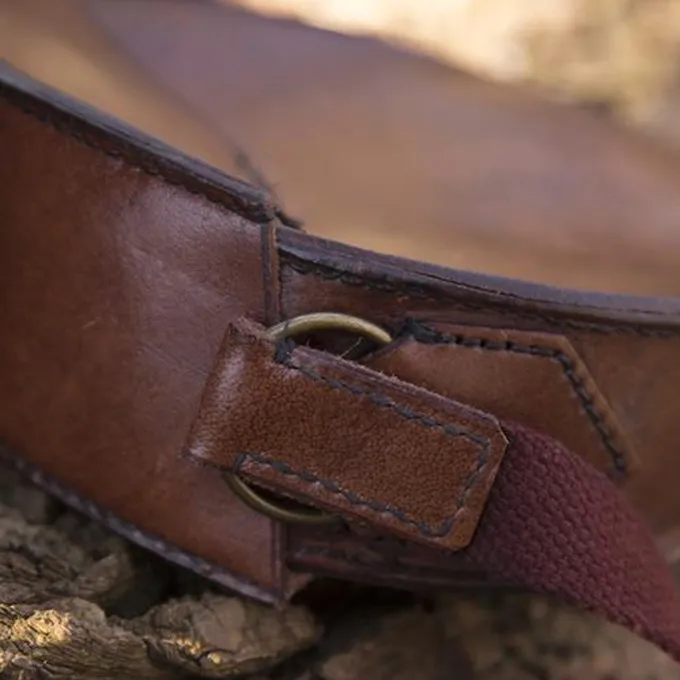 Ce sac en cuir pratique est fabriquĂ© dans un cuir de mĂȘme couleur et a une forme ronde. Un design de base polyvalent et un accessoire parfait pour de nombreuses tenues LARP et Cosplay. Le sac est fait de cuir durable et trĂšs robuste qui dure longtemps. Vous pouvez fermer le sac avec une Ă©pingle. Il a une sangle en coton avec laquelle vous pouvez l’accrocher sur votre Ă©paule. La sangle est rĂ©glable en longueur.