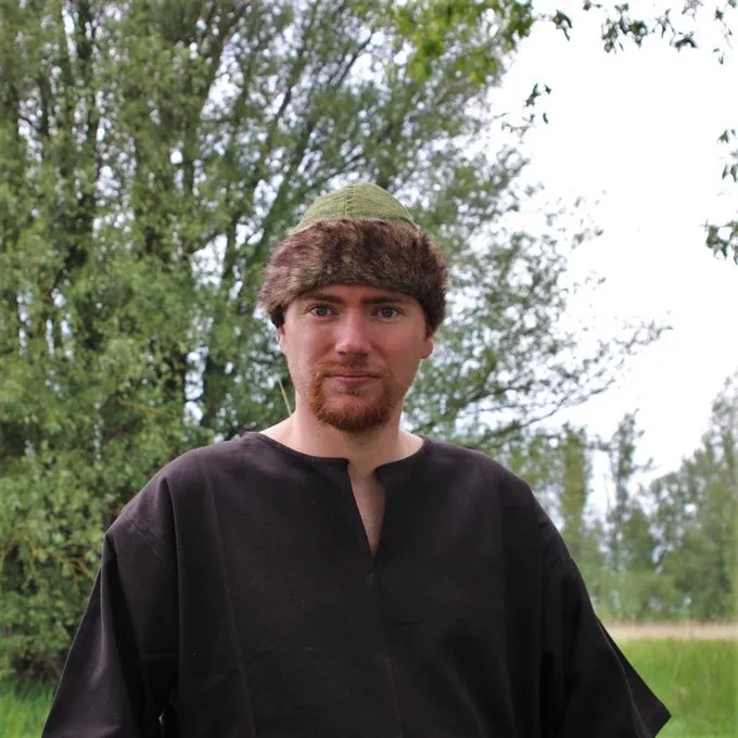 Ce chapeau de Viking est basĂ© sur plusieurs excavations et reprĂ©sentations archĂ©ologiques. Des chapeaux comme celui-ci Ă©taient portĂ©s partout dans le monde viking, parfois ils se terminaient par un conseil qui pouvait ĂȘtre dĂ©corĂ©.