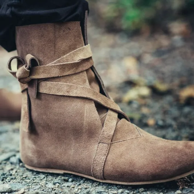 Ces bottes sont basées sur les résultats de Haithabu / Hedeby, une ville viking dans le Schleswig-Holstein qui a prospéré entre le 8 e et 11 e siÚcles. Les chaussures sont en cuir velours doux. La semelle est en caoutchouc.