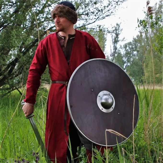 Un exemple de court caftan asymĂ©trique a Ă©tĂ© trouvĂ© Ă Haithabu. Dans certaines tombes de Birka, des broches se trouvent au niveau de la hanche, ce qui suggĂšre que les caftans ont Ă©tĂ© fermĂ©s avec une broche ou une Ă©pingle. Mais bien sĂ»r, le caftan peut Ă©galement ĂȘtre fermĂ© avec une ceinture.