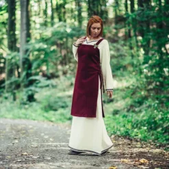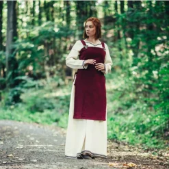 Le hangeroc Ă©tait un type de vĂȘtement que les vikings et dâautres cultures europĂ©ennes du haut Moyen Age portaient par-dessus une robe de soirĂ©e. Les femmes vikings portaient un vĂȘtement hangeroc et slip aux couleurs contrastantes. Les riches femmes vikings portaient des couleurs comme le rouge avec le bleu ou le violet. Ces couleurs coĂ»taient chĂšres Ă fabriquer, elles ne pouvaient donc ĂȘtre portĂ©es que par les couches supĂ©rieures de la sociĂ©tĂ©. Les Vikings des classes infĂ©rieures portaient des couleurs telles que le marron avec le jaune, la crĂšme avec le vert et des couleurs similaires moins coĂ»teuses Ă fabriquer. Cette rĂ©plique de hangeroc est faite de mĂ©lange de laine et agrĂ©able et chaude pour les mois dâhiver. Le hangeroc est ouvert sur les cĂŽtĂ©s, vous pouvez le lier avec les lacets sur le cĂŽtĂ©.