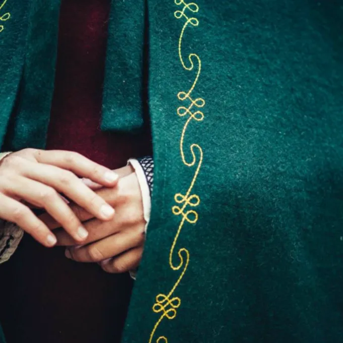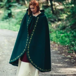Cette cape est faite de mĂ©lange de laine, ce qui le rend trĂšs confortable pour les mois d’hiver, au dĂ©but du printemps et de l’automne. La face avant du manteau a deux rubans pour attacher le sĂ©curiser. Dans la pluie et le froid, vous pouvez tirer sur le capot pour garder la tĂȘte bien au chaud. Le capot est long dans le style medievall de liripipe. Le tissu est impermĂ©able Ă l’eau sous une pluie lĂ©gĂšre, vous pouvez Ă©ventuellement traiter le tissu pour le rendre encore plus impermĂ©able Ă l’eau contre les pluies d’hiver. Les bords de cette cape sont dĂ©corĂ©es d’un motif brodĂ© avec Ă©lĂ©gance dans une couleur contrastĂ©e. Un vĂ©ritable atout pour votre reconstitution, LARP ou costume de cosplay.