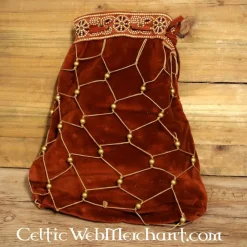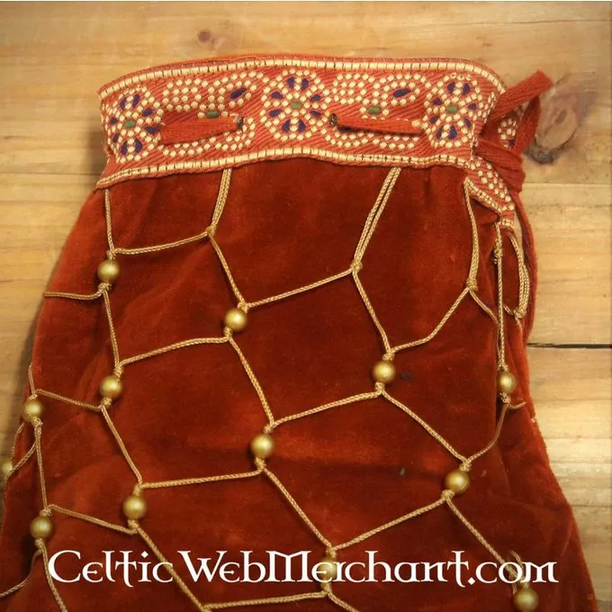 Cette pochette luxueuse peut ĂȘtre utilisĂ©e pour la reconstitution mĂ©diĂ©vale et Renaissance. Il complĂšte une noble, une tenue aristocratique ou royale. Le tissu veloutĂ© de la poche est dĂ©corĂ© d’un motif de fil d’imitation d’or et de perles d’imitation. Il est fini par le bord supĂ©rieur joliment dĂ©corĂ©, ressemblant Ă une tapisserie luxueuse.