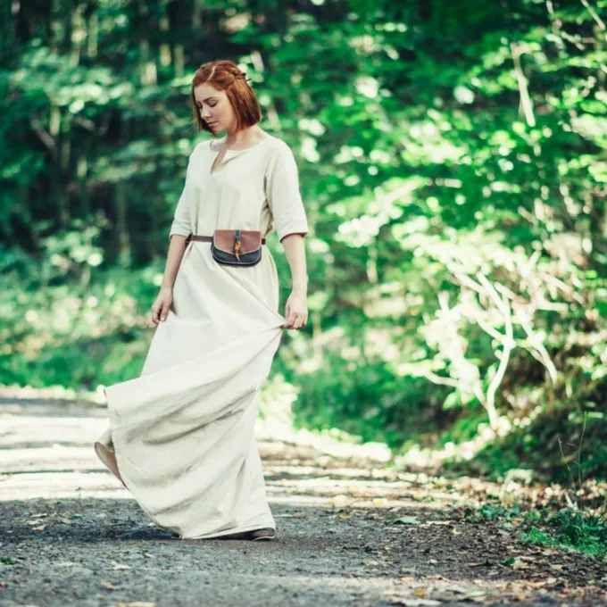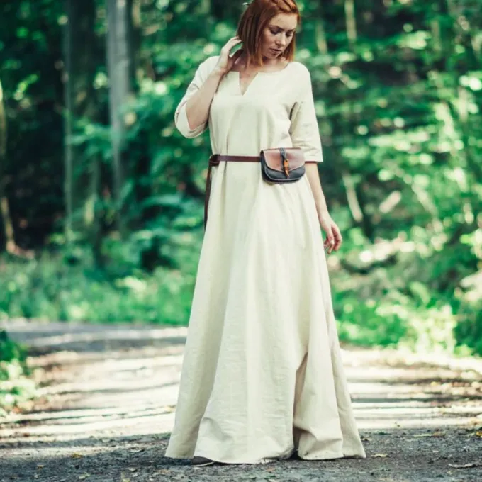Des robes universelles comme celle-ci ont Ă©tĂ© portĂ©es par diffĂ©rentes personnes en Europe du dĂ©but au haut Moyen Ăge. Des restes d’originaux ont Ă©tĂ© retrouvĂ©s et de nombreuses images ont Ă©tĂ© conservĂ©es dans des manuscrits mĂ©diĂ©vaux. Parce que la robe est adaptĂ©e Ă diffĂ©rentes pĂ©riodes, vous pouvez lâadapter Ă vos envies avec des accessoires tels que des ceintures, des sacs et des surcottes. De cette façon, vous pouvez l’utiliser pour plusieurs tenues. La robe a un col en V et des manches courtes. C’est pourquoi c’est gĂ©nial pour les journĂ©es chaudes. Vous pouvez l’utiliser comme une robe slip, le porter sĂ©parĂ©ment ou le combiner avec un vĂȘtement, un tablier ou une surcotte.