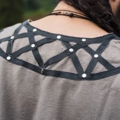 Cette tunique est parfaite pour les tenues Viking LARP et Cosplay. La tunique est joliment dĂ©corĂ©e de cuir et de rivets, elle est Ă©galement brodĂ©e. Il a des manches longues, est fait de coton solide et arrive approximativement jusqu’aux genoux. Cette conception est inspirĂ©e par les Vikings de Rusvik ! La ceinture sur les photos est vendue sĂ©parĂ©ment.