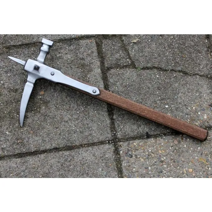 Le marteau de guerre Ă pointe extra longue a une longueur de 56 cm et la tĂȘte de marteau mesure 22,5 x 12 cm. Il a une poignĂ©e en bois dur et est entiĂšrement fait Ă la main. Il pĂšse env. 0,9 kg.