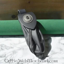 Cette poche d’argent est basĂ© sur des exemples mĂ©diĂ©vaux fin du monde 1400. Le cuir souple est serrĂ©e avec un lacet de cuir, Ă laquelle la boucle dĂ©corative est fixĂ©e. La boucle ferme le sachet en le faisant coulisser Ă travers une fente dans le rabat. Le sachet est fait d’une cuir de vache mm d’Ă©paisseur et a un rabat de 2 mm d’Ă©paisseur. La boucle de courroie est adaptĂ© pour une ceinture jusqu’Ă 7 mm. La poche est d’environ 17 x 13 cm de large.