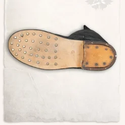 Ces bottes Mytholon sont parfaits pour les costumes de style et d’Ă©poque LARP. Depuis les temps anciens sur, les chaussures Ă©taient souvent dĂ©corĂ©es avec des clous de chaussures. Cela a renforcĂ© la semelle et empĂȘchĂ© les gens de glisser sur la semelle en cuir. Ces bottes ont un beau talon et le reste de la semelle a des clous de chaussures. La zone autour du talon est renforcĂ© avec de l’acier. Les bottes sont en cuir en daim souple mais solide.