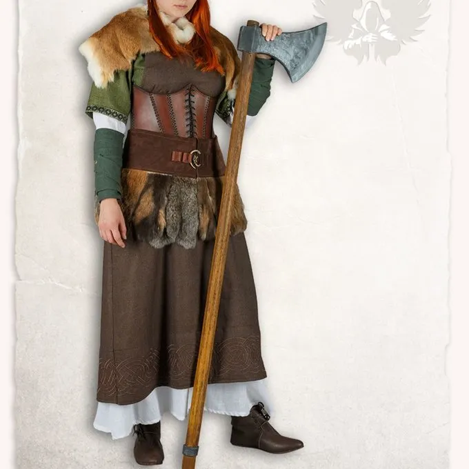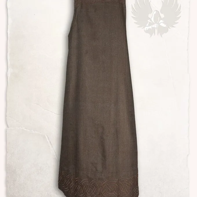 Ce hangeroc convient Ă Viking reconstitution historique, LARP et cosplay. De plus, ce hangeroc a un beau motif Ă chevrons, ce qui le rend tout Ă fait unique. La robe atteint aux veaux et est ornĂ© d’un motif de noeud sur le bord infĂ©rieur. Donc, ce hangeroc est l’accessoire idĂ©al pour les costumes vikings.