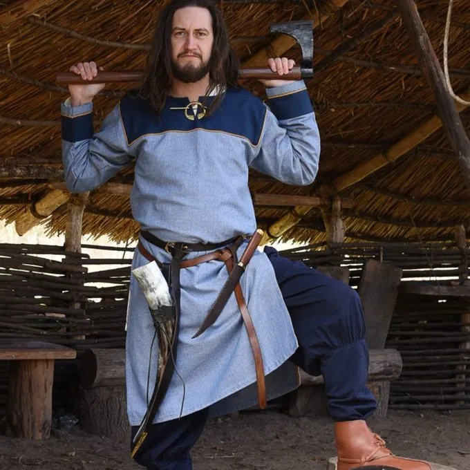 Cette tunique est parfaite pour la reconstitution et le cosplay des premiers peuples de lâEurope occidentale tels que les Vikings, les MĂ©rovingiens et les Francs. La tunique tombe au genou et est faite de coton robuste. Les bandes de tissu qui ornent les manches et le dĂ©colletĂ© sâadaptent Ă©galement Ă la mode du dĂ©but du Moyen Ăge.