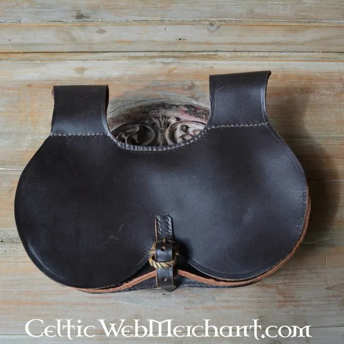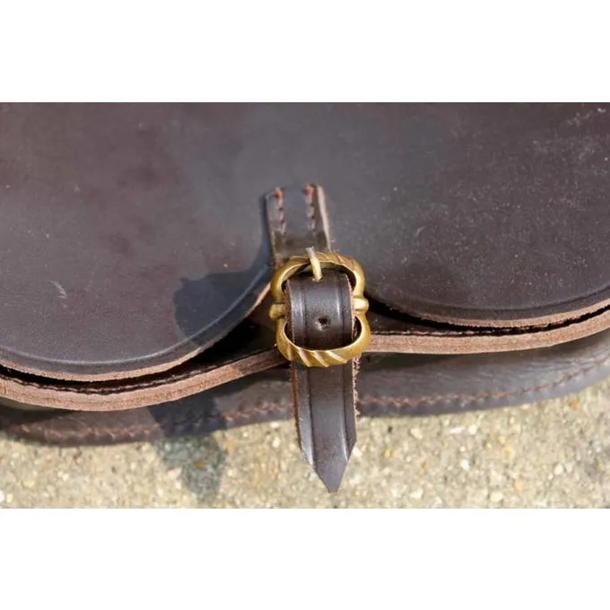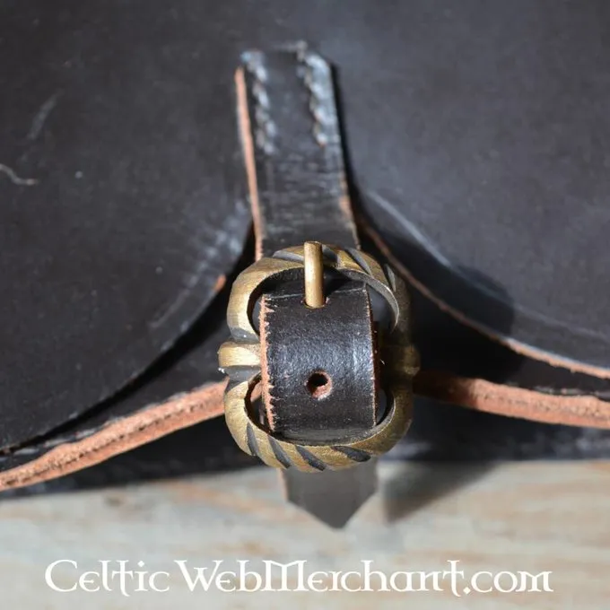 Ce sac est fait aprĂšs plusieurs originaux qui ont Ă©tĂ© portĂ©s entre la 2Ăšme moitiĂ© du 14Ăšme siĂšcle et la 1Ăšre moitiĂ© du 15Ăšme siĂšcle. Il est composĂ© de 3 mm d’Ă©paisseur et cuir robuste est fourni avec une belle mais discrĂšte boucle. Le sac mesure 25 x 11 x 4 cm.